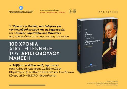 Παρουσίαση έκδοσης: «100 χρόνια από τη γέννηση του Αριστόβουλου Μάνεση», Σάββατο 9 Μαΐου 2026