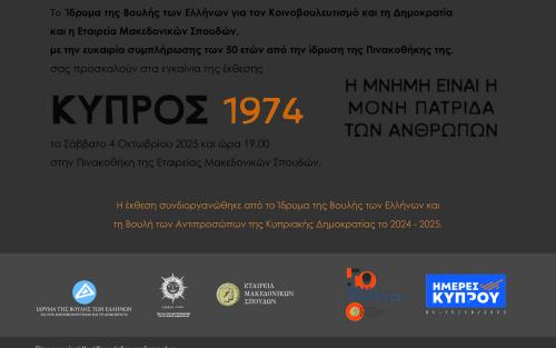 Εγκαίνια έκθεσης: «Κύπρος, 1974. Η μνήμη είναι η μόνη πατρίδα των ανθρώπων» στη Θεσσαλονίκη