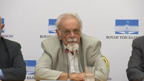 Ο γενικός γραμματέας του Ιδρύματος της Βουλής, καθηγητής Ευάνθης Χατζηβασιλείου, αφού ευχαρίστησε τους ομιλητές και το κοινό που είχε κατακλύσει τον χώρο, αναφέρθηκε σε δύο σημαντικά γνωρίσματα του εργαστηρίου. Αφενός τη συστηματική ερευνητική δουλειά και την αξιοποίηση αρχείων, ελληνικών και ξένων, και αφετέρου το witness seminar, ένα μεθοδολογικό εργαλείο με σημαντική διάδοση στο εξωτερικό, αλλά άγνωστο στην Ελλάδα, με το οποία δρώντα πρόσωπα καταθέτουν τη μαρτυρία τους.