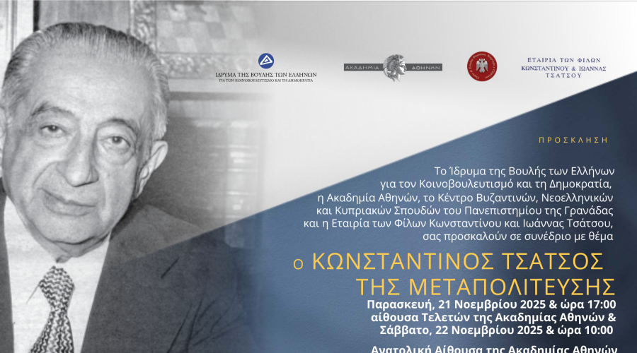 Το Ίδρυμα της Βουλής των Ελλήνων για τον Κοινοβουλευτισμό και τη Δημοκρατία σε συνεργασία με την Ακαδημία Αθηνών, το Κέντρο Βυζαντινών, Νεοελληνικών και Κυπριακών Σπουδών του Πανεπιστημίου της Γρανάδας και την Εταιρία των Φίλων Κωνσταντίνου και Ιωάννας Τσάτσου διοργανώνει συνέδριο αφιερωμένο στον Κωνσταντίνο Τσάτσο με θέμα Ο Κωνσταντίνος Τσάτσος της Μεταπολίτευσης με τη συμμετοχή ειδικών από την Ελλάδα και το εξωτερικό. Το συνέδριο θα πραγματοποιηθεί στην Αθήνα, στην Αίθουσα Τελετών της Ακαδημίας Αθηνών την Παρασκευή 21 Νοεμβρίου 2025 και στην Ανατολική Αίθουσα της Ακαδημίας Αθηνών το Σάββατο 22 Νοεμβρίου 2025 (Πανεπιστημίου 28).